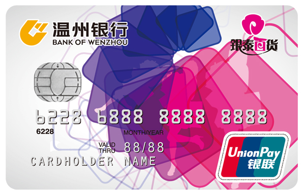 温州银行银泰联名卡是我行与银泰百货联名发行的银联标准信用卡,该卡主要面向时尚精英人士,与银泰百货联合打造的拥有购物优惠及金融服务于一身的百货联名卡。给予持卡人一定信用额度,具有信用消费、转账和存取现金等功能,并可享受双重积分。