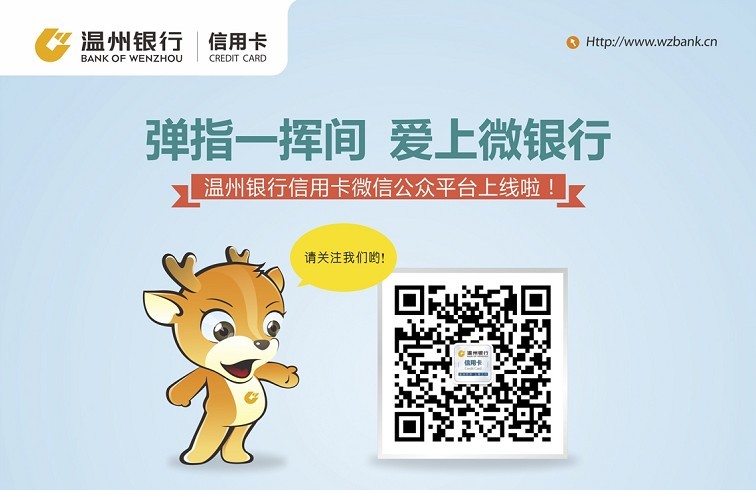 活动期间,温州银行信用卡持卡人关注“温州银行信用卡”公众微信平台并成功绑定我行信用卡即可获赠我行信用卡5000积分。