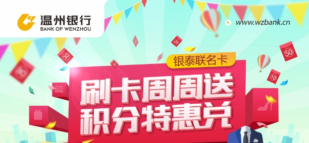 为回馈我行信用卡持卡人,进一步宣传温州银行银泰联名卡品牌,推出银泰联名卡“刷卡周周送 积分特惠兑”营销活动。现将活动内容公布如下: