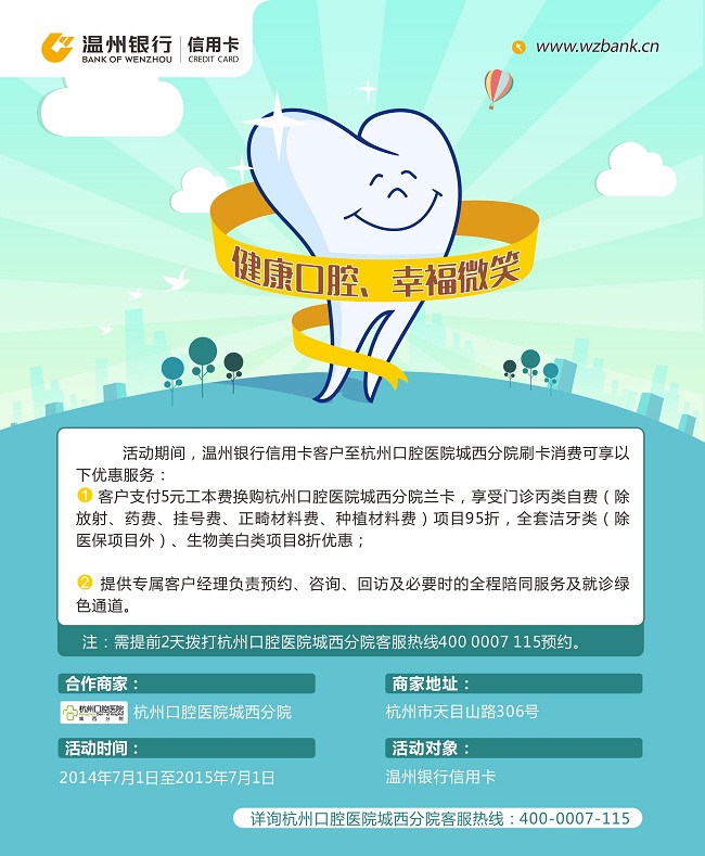 “健康口腔、幸福微笑”信用卡刷卡优惠