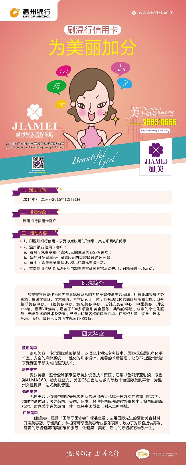 "刷温州银行信用卡,为美丽加分"刷卡优惠活动