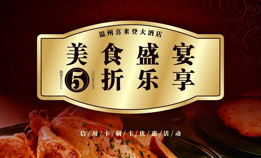 活动期间,每逢周日持温州银行信用卡在温州喜来登酒店一楼盛宴标帜餐厅刷卡消费自助晚餐,享受5折优惠。