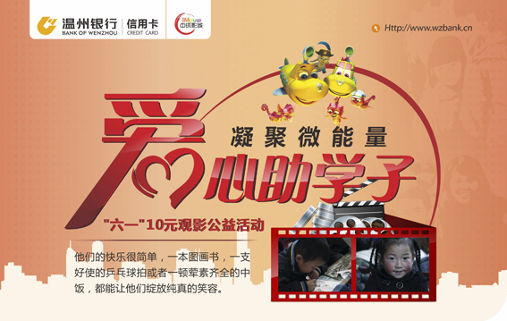 温州银行信用卡部“凝聚微能量 爱心齐飞扬”10元爱心观影系列公益活动
