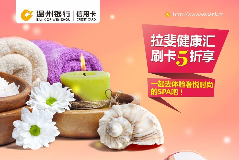 五、活动内容:活动期间(每逢周二)温州银行信用卡客户至温州拉斐健康美容会所刷卡消费(除洗浴和足浴项目外),可享受门市价5折优惠。