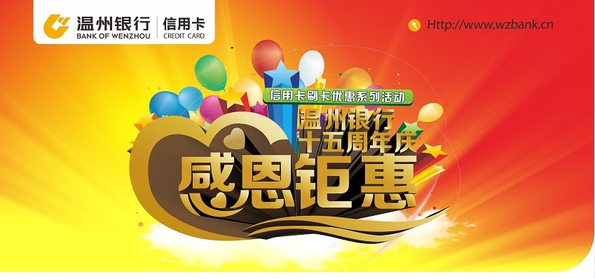 (二)活动内容:值此温州银行十五周年庆典之际,我行将以信用卡客户对我行信用卡业务的贡献度进行排名,前100名客户即可赠送王品台塑牛排尊荣套餐券两张,每张价值372元。