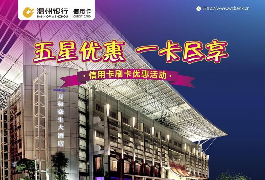 1、刷温州银行尊享白金卡、财富卡、精英卡、公务卡、温商信用联盟卡消费可享受房费门市价5折优惠,其他卡享受5.5折优惠;