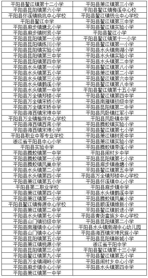 平阳地区中小幼公立学校(详见下方学校名单)