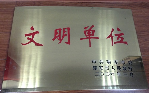 2006年3月,中共瑞安市委、瑞安市人民政府授予温州银行瑞安支行二○○六年度“文明单位”称号。