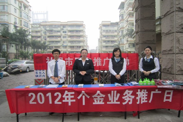 为加强我行理财产品的普及度,促进业务规模与社会效应的同步增长,5月5日上午,营业部遵循总行活动的要求指示,在丽景花苑社区门口开展“个金业务推广日”的主题活动,并对信用卡、电子银行等个金业务进行介绍及推广,同时还开展反洗钱、反假币知识宣传。