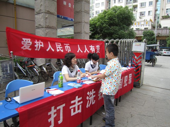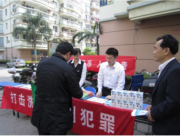 为响应总行关于反洗钱宣传月的号召,进一步提高社会公众的反洗钱意识,增强社会各界对反洗钱工作的理解和支持,营造金融机构履行反洗钱义务的良好社会基础。4月23日,总行营业部在丽景花苑小区开展爱护人民币、打击洗钱犯罪宣传便民活动。
