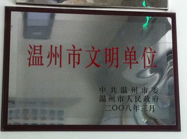 2008年荣获温州市文明单位荣誉称号