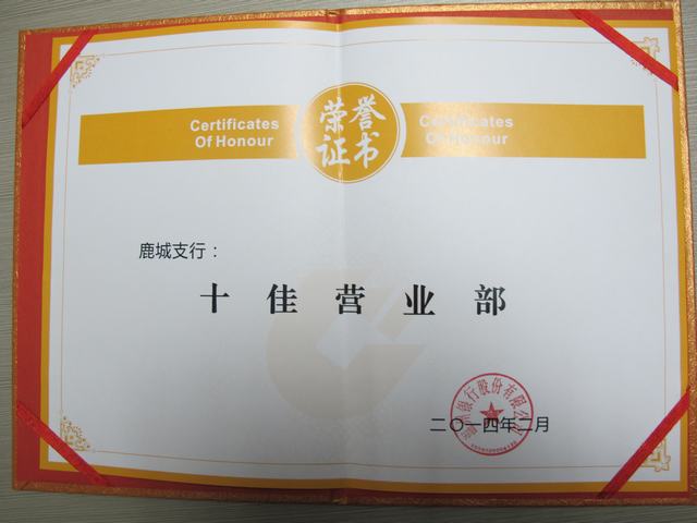 热烈祝贺温州银行鹿城支行营业部荣获2013年温州银行十佳营业部荣誉称号!