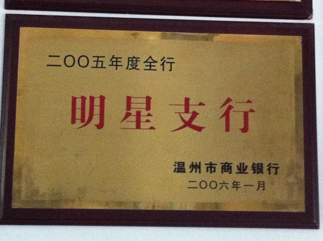 热烈祝贺温州银行鹿城支行荣获2005年温州银行明星支行荣誉称号