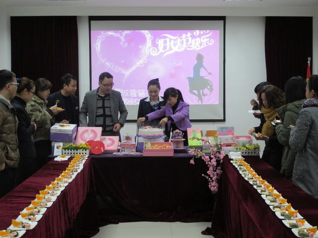 在三八妇女节来临之际,为给女职工们带来节日的喜悦与欢乐,缓解忙碌工作带来的压力,3月7日下午,鹿城支行营业部邀请了元祖食品来到支行会议室举办了一场下午茶甜点派对。精致美味的各式甜点,同事间的暖暖交流,在这个春寒料峭的午后,不只点缀了我们的心情,更是增添了我们工作的动力。派对上,还特地为当天生日的女员工准备了一个别致美丽的生日蛋糕,大家欢乐的庆生气氛让她度过了一个难忘的生日。这样一个气氛轻松、甜蜜欢乐的下午茶时光虽然短暂,但是却给予我们更加友爱、更加珍惜的感受,我们将愉悦的心情、饱满的精神状态带回岗位,投入到工作中。