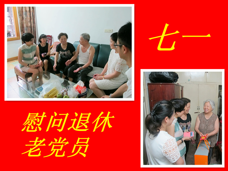 在建党93周年之际,7月1日中午,鹿城支行以深入开展党的群众教育路线实践活动为契机,开展了迎“七一”慰问活动,鹿城党总支部书记周佩静行长、鹿城工会主席王和行长等一行前往水心莲藕社区看望慰问退休老党员,在党的生日之际为他们送上衷心的祝福。