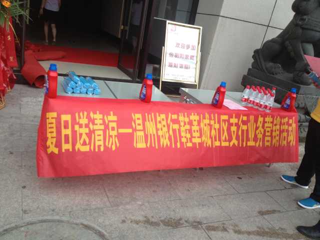 入夏时节,烈日炎炎,为了我行业务更强劲的发展,给市场注入“清爽”的活力,社区支行鞋革城支行于 7月22日上午开展了“夏日送清凉”业务营销活动,推动我行金鹿理财、贷款产品等业务的发展。