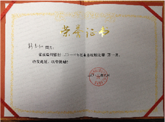 热烈祝贺温州银行瑞安支行彭玉仙荣获温州银行2013年度业务技能比赛第一