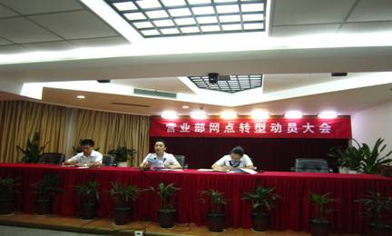 为了响应全行开展网点转型升级的号召,营业部于2012年7月30日晚召开了网点转型启动仪式暨员工动员大会。