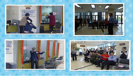在防暴演练过程中,预案模拟了“歹徒”用危险品实施预谋抢劫;冒充公安人员,企图蒙骗员工进入营业场内实施抢劫;对自助设备室内清机的出纳员,实施抢劫;在营业大厅抢劫客户现金等多个场景,参加演练人员均表现出临危不乱,严格按照预案步骤有条不紊进行:与“歹徒”巧妙周旋,立即按下110报警器,迅速将现金重要凭证放入抽屉,并及时向上级领导报告。每个环节演练人员都分工明确,紧密配合,沉着应对,操作规范,使犯罪分子的意图无法得逞。