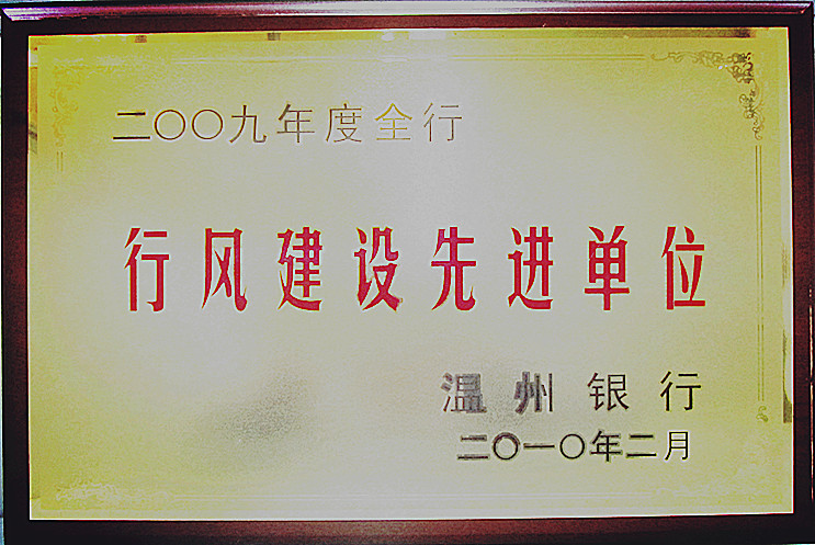 2010年2月,温州银行授予温州银行营高新区支行二○○九年度“行风建设先进单位”称号。