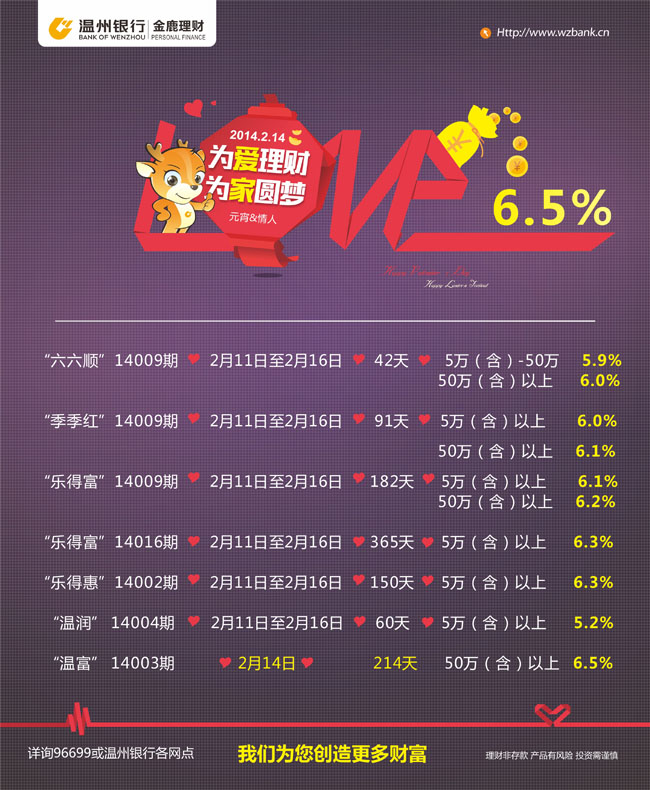 温州银行“2.14为爱理财”专属理财产品发售信息
