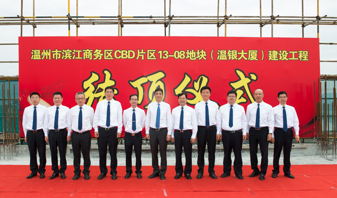 5月11日上午,温银大厦举行结顶仪式,总行领导班子及相关部门负责人出席仪式。上午10时08分,伴随着震天响的鞭炮声,行领导为大楼的最高层浇筑了最后一槽混凝土,标志着新大楼主体结构建设画上圆满句号。仪式现场,行领导一行视察了新大楼建设情况,并对工地上为新大楼建设付出辛勤劳动的人员表示感谢。