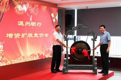 昨天,温州银行2013年增资扩股股份申购竞价会在浙江产权交易中心“落锤”,募集资本近30亿元。经过竞价、抽签及公证确认,最终由包括新湖中宝、大自然集团在内的8家温商企业入围温州银行此轮增资扩股名单,其入股资质将报监管部门审批。相关审批通过后,温州银行注册资本将增至25.08亿股。