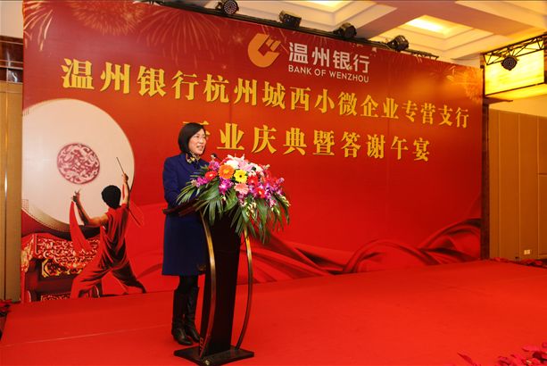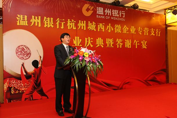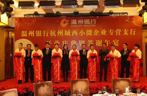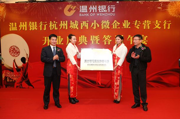 2012年11月28日,温州银行杭州城西小微企业专营支行亮相杭城。温州银行总行党委殷乐人书记,杭州西湖区委常委、副区长龚和艳女士,杭州温州商会会长、新明集团有限公司董事长陈承守,杭州市诸暨商会会长王利军等嘉宾出席了本次开业庆典活动。