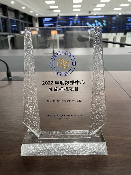 2023年3月24日,由中国计算机用户协会数据中心分会主办的以“奋进新征程”为主题的第十四届数据中心峰会在北京召开。会上公布了第十四届数据中心行业调查结果,本届调查评委由金融、政府、企业用户、设计院及行业协会等不同行业专家,从技术先进性、行业代表性、社会影响力等多角度进行评价。温州银行温银大厦数据中心工程荣获“2022年度数据中心实施样板项目”奖,成为温州市首家荣获该荣誉的单位。近年来,温州银行在科技项目上屡获佳绩,2022年9月曾荣获第五届“绽放杯”5G智慧金融专题赛全国一等奖,而本次摘得殊荣,进一步证实了温州银行在数据中心建设与管理上具有一定行业代表性。